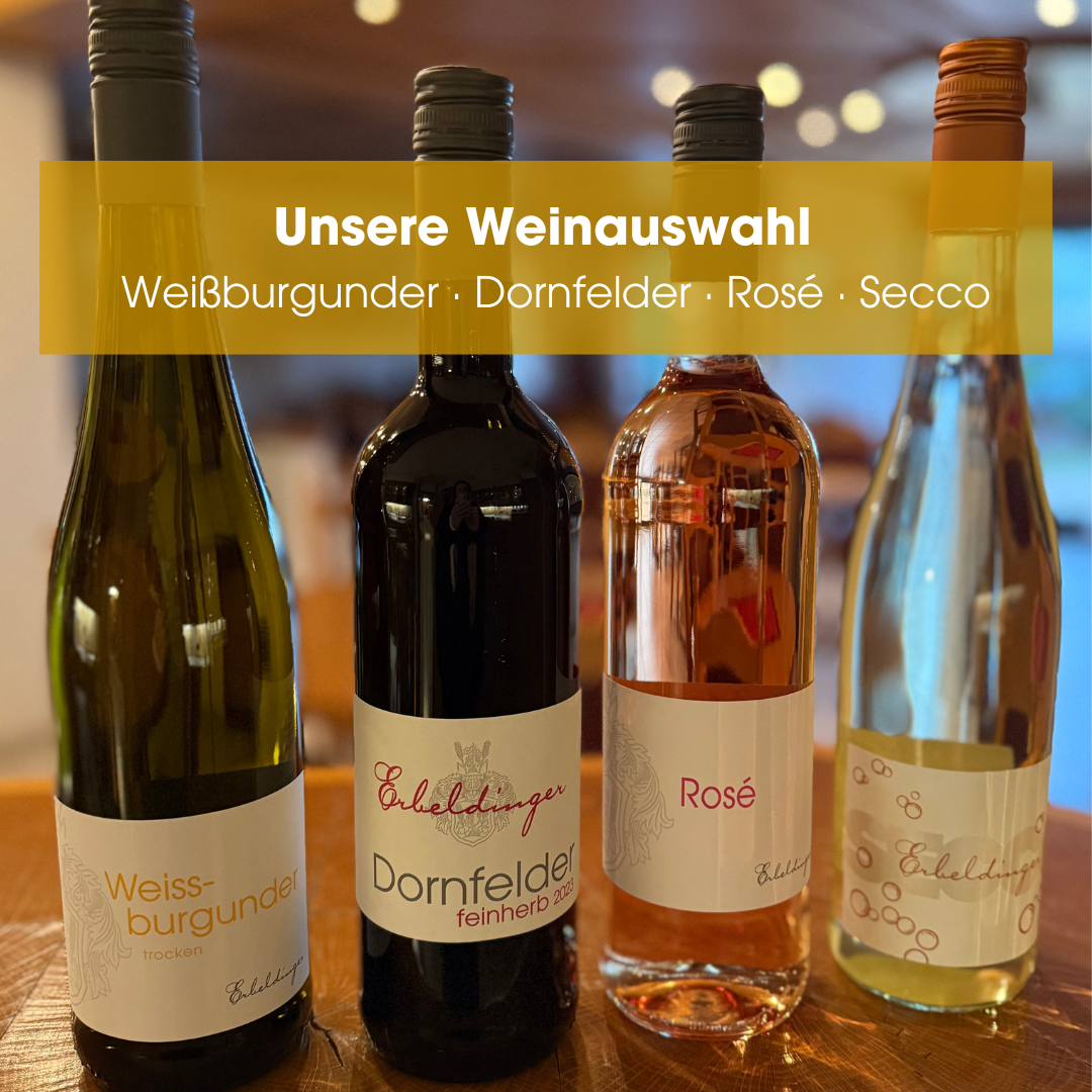 Wenn Sie es unkompliziert mögen, starten Sie mit dem Erbeldinger Klassiker. Für besondere Anlässe oder klare Vorlieben finden Sie unsere Auswahlpakete trocken, feinherb oder lieblich.